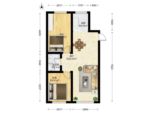 房屋戶型: 2 室2廳 1 廚1衛(wèi)